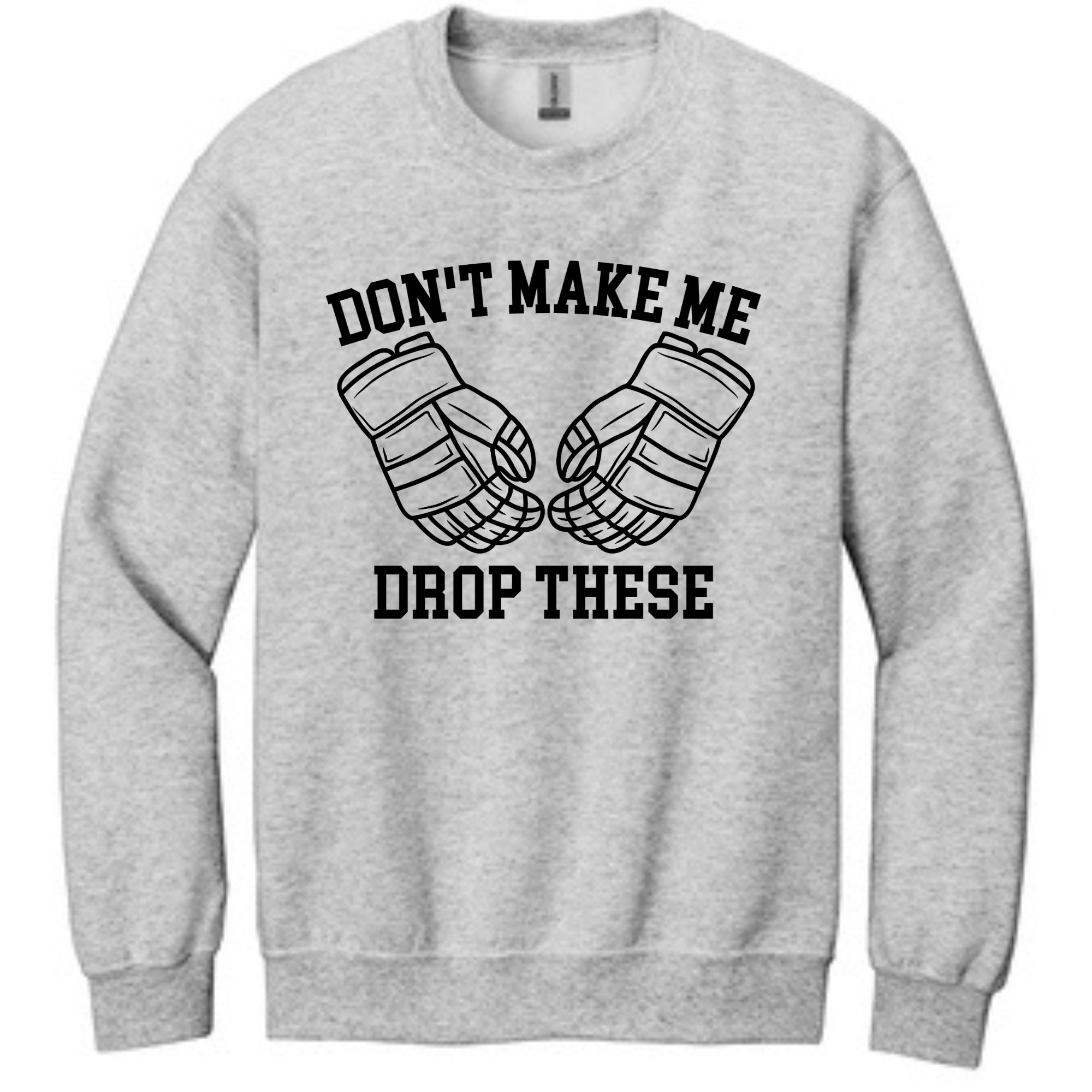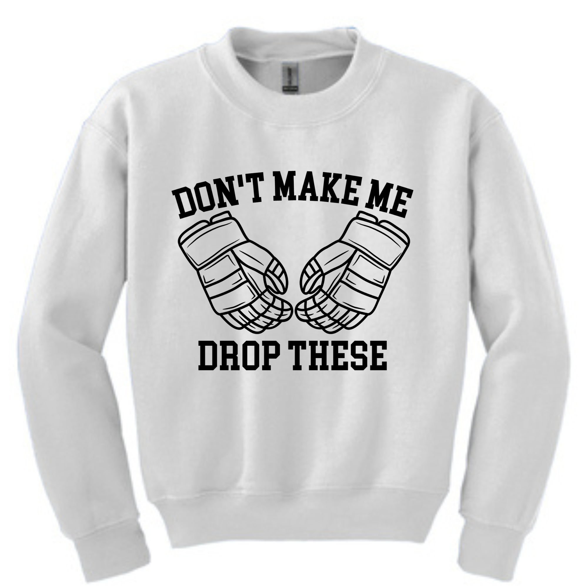 This listing will have "Don't make me drop these" on the sweatshirt. The image will be in black. I will offer this in a grey color for sizes toddler- adult and white will be available for youth-adult. I have the option for toddler hoodies and then hoodies and crew neck sweatshirts for the youth and adult sizes.
